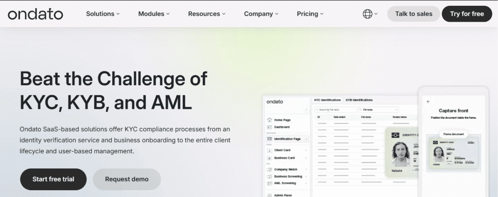 - Ondato – strong in enhanced due diligence and biometric verification.